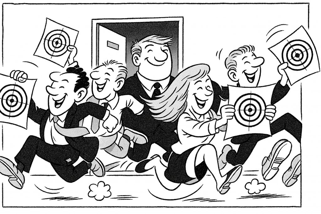 • Der Vorgesetzte ist von der Unerreichbarkeit des Ziels überzeugt und sagt ja zur Bereitschaft des Mitarbeiters und Nein zum unrealistischen Ziel.